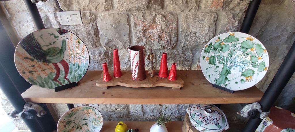 En plus de leur production, ces deux potiers donnent des cours aux classes et aux visiteurs qui montent de Beyrouth, après 40 km d’autroute côtière puis de route de montagne en lacets passant par Kfarhim, soit une bonne heure de voiture. Mais ils accueillent également des visiteurs pour des séjours à la montagne, on est à plus de 500 m. d’altitude, dans un petit village de maisonnettes en pierre dispersées au milieu des oliviers et des lauriers.