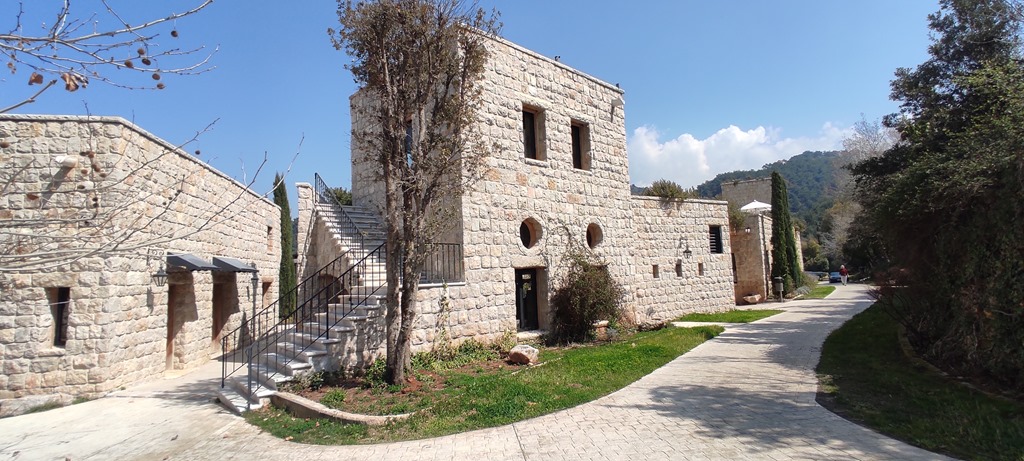 Des structures sont prévues pour des événements, le site est complété d’un grand restaurant avec vue panoramique, d’une piscine, et d’un hammam bâti dans le style traditionnel avec une voûte percée d’opercules pour une lumière tamisée. Et bien sûr des salles de massage et de soins corporels, c’est ce qui expkique les tarifs, on trouve plus de détails dans les brochures et sur leur site. Comme toute l’hôtellerie au Liban, le tourisme a souffert du Covid et des crises récentes, il y a évidemment moins de passage et certains touristes qui laissent des critiques sur les sites de voyage oublient simplement que c’est un pays qui traverse crises et guerres et où les difficultés de tout ordre sont à peine imaginables. En revanche, ceux qui cherchent au-delà du confort une expérience artistique et d’initiation à la poterie dans un vrai cadre naturel, Bkerzay vaut le déplacement.