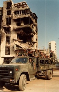 Cette fois je pars avec Christian, qui passe plus facilement en tant que chrétien et connaît bien la zone. Nous passons par le port, sans problème, et remontons Achrafiyeh. Nous croisons une colonne de camions qui me fait peur : cinq ou six camions pleins de miliciens des Forces libanaises en tenue de commando, avec les cordes d’assaut roulées dans le dos. Armés jusqu’aux dents, silencieux, et avec un regard absent, vague et dur. Un regard de drogués, d’hallucinés ? Ils partent à l’évidence en mission, et je frémis en pensant aux gens qu’ils trouveront sur leur passage.