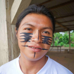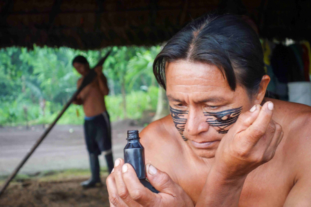 Ce qui les a le plus frappés c’est comment ces indigènes portent sur le visage, avec une tradition de peinture faciale enseignée dès leur plus jeune âge, les masques symbolisant les animaux de la forêt : le jaguar, l’aigle, le serpent, la tortue, le singe, le hibou… Autrefois peintures guerrières, car les Achuar étaient il y a encore quelques décennies de redoutables chasseurs nomades et guerriers, ces masques restent une tradition fortement maintenue pour marquer le lien avec les animaux protecteurs.