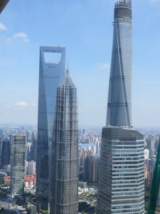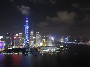De jour, la Pearl Tower qui culmine à 468 mètres est comme une fusée pointée vers l’espace. Le soir elle s’anime avec un éclairage qui est comme un son et lumière, changeant sans cesse de couleur et participant au spectacle qu’on a depuis le Bund, avec les éclairages changeants et les publicités sur les autres immeubles, comme des écrans géants.