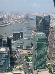 Vu de la Pearl Tower, le Bund apparaît comme écrasé : c’est la revanche de la Chine moderne sur le Shanghaï des concessions, symbolisées par les façades arrogantes qui s’alignent sur le Bund et sont d’ici à peine perceptibles avec leurs cinq à six étages, désormais dominées par les nouveaux gratte-ciels qui parsèment le centre-ville.
