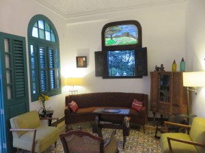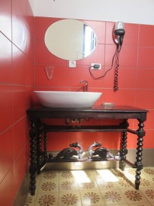 Trouver les matériaux, la peinture, les équipements électriques et la plomberie, les sanitaires neufs, n’a pas non plus été une mince affaire, et le chantier a mis certainement beaucoup plus de temps que Laura n’imaginait au départ. Ensuite a commencé la partie la plus passionnante, celle qui a permis de donner à la maison rénovée son cachet ancien. Laura a couru les antiquaires, il y a en a quelques-uns spécialisés dans les meubles ou les bibelots, et a réussi à retrouver l’harmonie entre la décoration, les lustres, la vaisselle et les couverts, les nappes et jusqu’aux salières en cristal coloré choisies une à une. Pour trouver l’équivalent, il faut aller jusqu’à Trinidad au restaurant-musée Quince Quatorze (1514) où l’on sert à table dans de la vaisselle d’époque avec verres en cristal et argenterie. Ici, où que se pose le regard, ce sont des objets anciens et des meubles de style qui donnent une sensation d’harmonie.