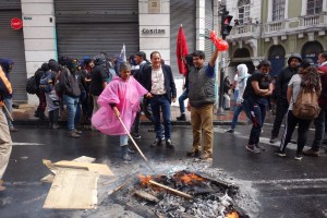 Le vieux centre de Quito, traversé ce matin en trolley et qui faisait ville morte avec tous les magasins fermés, est cet après-midi ceinturé de petits barrages de pierres et de petits feux qui dégagent une fumée acre. Hier déjà, j’avais été frappé de la différence sur la grand-place qui s’ouvre devant le siège présidentiel : l’année dernière on pouvait s’inscrire pour une visite du palais et si on avait un peu de chance on pouvait rencontrer le président Moreno, hier toute la place était interdite aux piétons et les badauds se pressaient sur la lisière sud du parc en regardant vers le palais.