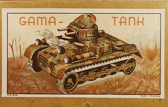 Parmi les marques allemandes, certaines comme Arnold et Gescha proposent des chars qui ne ressemblent que lointainement au PzKw 1. Il s’agit de jouets petits et robustes, mais qui ne sont pas à l’échelle des figurines de l’époque. C’est Gama qui, de très loin, domine la production en qualité et en diversité. Jouets robustes à moteur à ressort actionnant des chenilles en caoutchouc, mitrailleuses avec des pierres à briquet crachant des étincelles quand le char est en mouvement, détail des lots de bord (pelle-pioche et hache) : Gama arrive à fixer un standard, puisqu’il sera progressivement copié par les autres constructeurs.