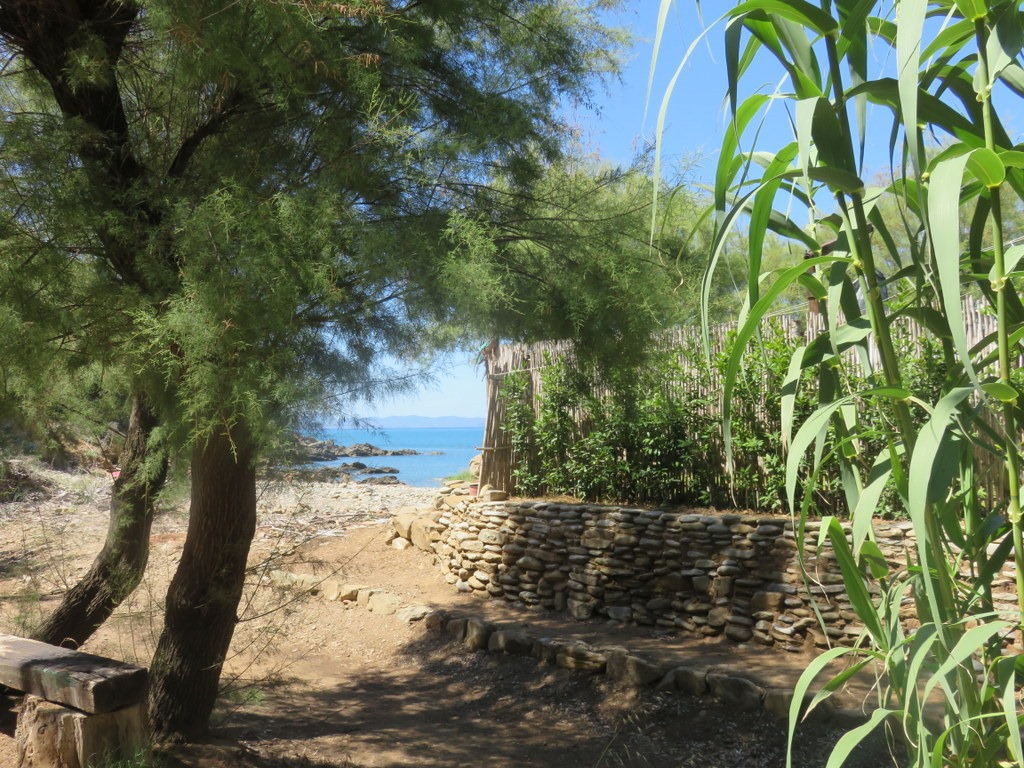 Vu de la plage, le palais d’Enrico se fond dans la nature sous une frondaison de tamaris et les quelques décorations sur le côté, dont de grosses amarres de bateau, sont ce qu’il a trouvé sur une plage qu’il nettoie tous les jours. Face à l’île d’Elbe, ce surveillant de plage d’un genre particulier est le garant que Fosso alle canne reste un lieu réellement préservé.