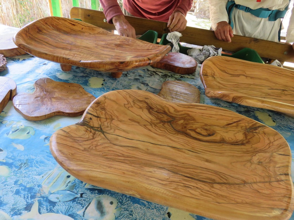 Enrico, qui est un ermite mais n’est pas sauvage, aime la compagnie. Il accueille le visiteur dans son palais à ciel ouvert et montre une sélection de ses œuvres car il est sculpteur et spécialiste du bois. Essences de la région comme l’olivier, le cerisier et le chêne liège, mais aussi essences plus rares comme l’acajou ou l’ébène, il crée des objets en mariant les couleurs et les matières.