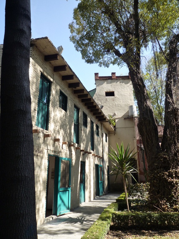 C’est donc au bout de deux ans de cohabitation acceptée, puis subie, et après des disputes avec Diego Rivera, que Trotsky s’installe en mai 1939 dans une maison également située à Coyoacan, à quelques pâtés de maison de la Casa Azul, et située rue de Vienne. Cette installation aurait été financée par le parti américain des travailleurs, Trotsky n’ayant lui-même que des moyens limités. Mais d’emblée le fondateur de l’Armée rouge fait faire des travaux militaires pour sécuriser la maison : les murs du jardin sont rehaussés, une annexe est construite dans le jardin pour loger des gardiens, les accès sont surveillés. (Ci-dessus à gauche, après les renforcements, la façade sur la rue complètement murée, à droite et en-dessous à gauche, deux des trois tours de guet).