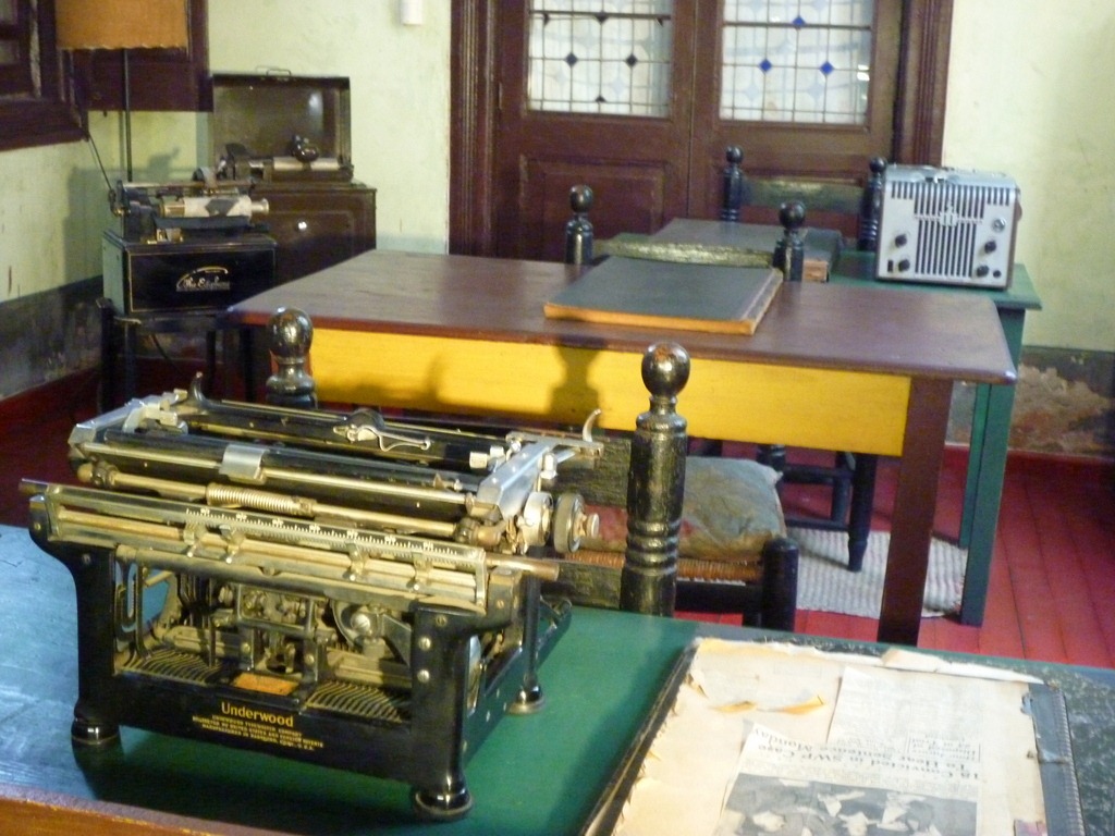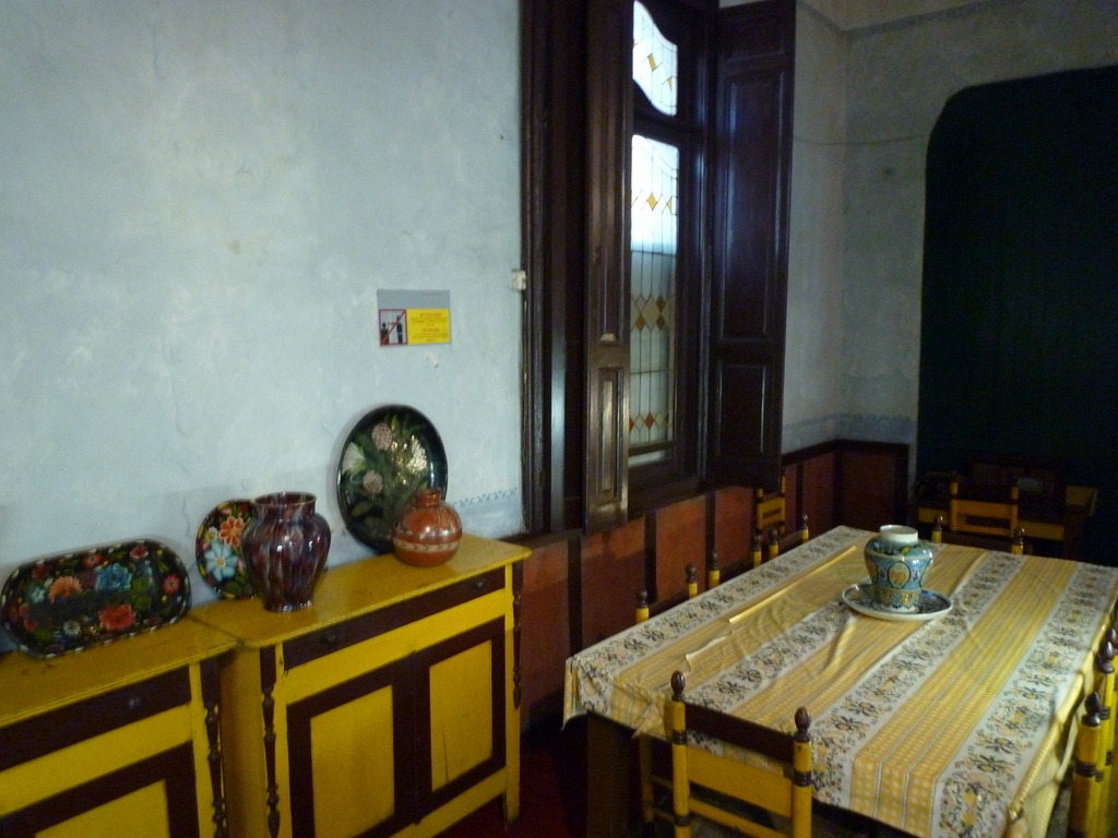 Ces précautions ne suffisent pas puisqu’en mai 1940, un commando mené par un autre muraliste connu, David Alfaro Siqueiros, attaque le domicile de Trotsky à la mitraillette avec vingt militants armés, sans faire de victime mais en emmenant un gardien en otage. Trois tours de guet sont construites sur les côtés de la maison donnant sur les trois rues perpendiculaires, certaines fenêtres sont totalement murées, comme ici la cuisine, d’autres le sont à moitié. Après sa tentative d’assassinat, Siqueiros sera forcé à l’exil tout en restant membre du PC mexicain jusqu’à sa mort en 1974. Détail révélateur, Siqueiros recevra le prix Lénine pour la paix en 1966…