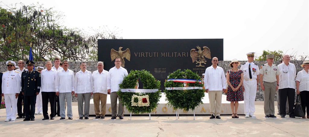 La bataille de Camerone a été célébrée le 30 avril dans la localité de Camaron de Tejeda au Mexique, en présence des autorités mexicaines, dont le gouverneur de l’Etat de Veracruz Javier Duarte de Ochoa, et du ministre délégué à la défense Kader Arif, accompagné de l’ambassadeur de France au Mexique Elisabeth Beton Delègue.