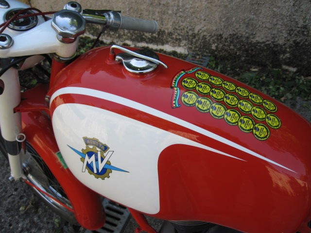 Ramenée en France, dédouanée, immatriculée, inscrite au « Registre hisorique MV Agusta », retapée par Jean-Louis Rigouste à L’Officina, puis par Thierry chez HT Motos, la petite 150 continue à tourner comme un moulin et, si je ne m’en sers pas davantage en ville, ce n’est pas seulement parce que son double échappement, joliment griffé “Emmevi”, lui donne une sonorité de moto nettement plus importante et pas trop respectueuse de l’environnement, mais parce qu’il faut bien huit à dix minutes pour la démarrer à froid, ce qui n’est pas du plus grand confort.