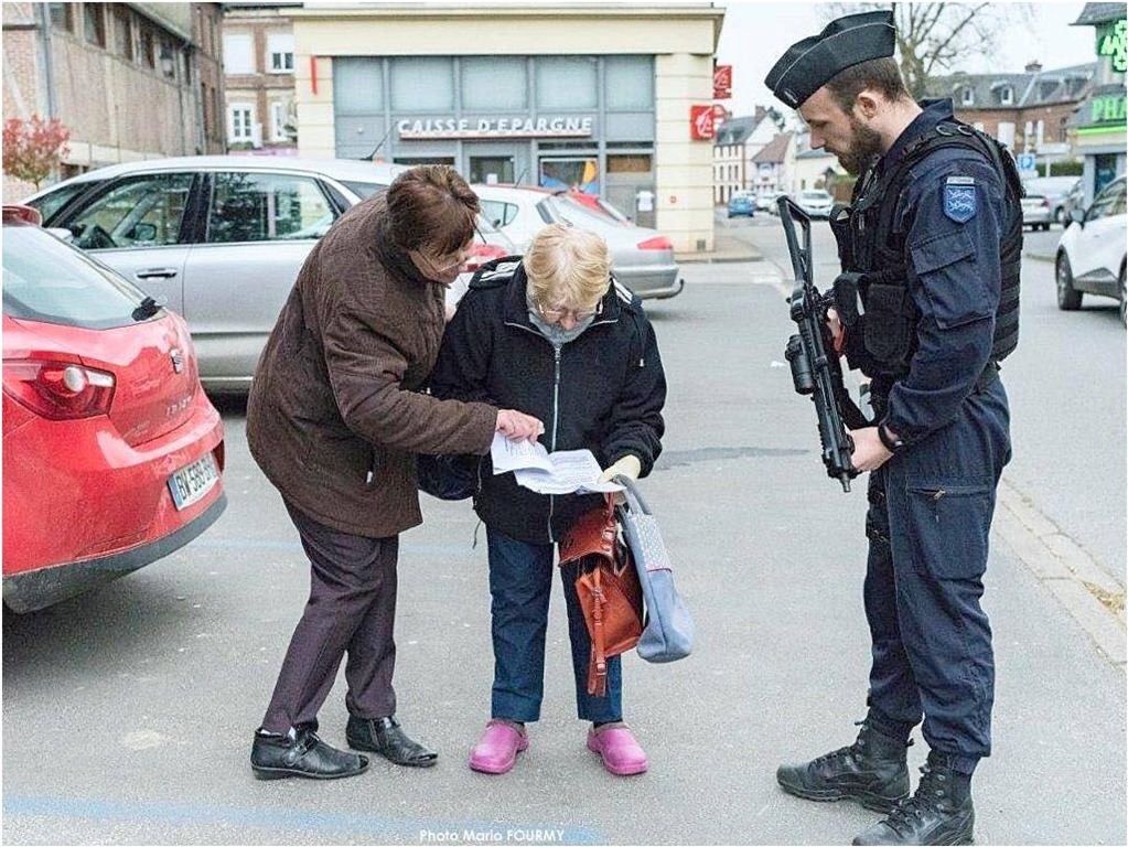 Dans le cadre des nouvelles missions du Coronavirus, les gendarmes de la brigade de Bernay ont un vaste territoire à contrôler sur la moitié du département de l’Eure. Il s’agit principalement de contrôler les dérogations de sortie et de déplacement. Une procédure qui déconcerte encore certaines personnes âgées, comme ici cette dame aidée par une autre à retrouver le bon papier.