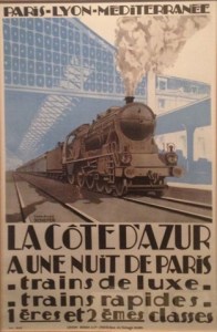 Panneaux décoratifs, ambiance feutrée, c’est ce qu’on trouvait encore dans le Train Bleu qui reliait Paris à Vintimille et s’arrêtait dans toutes les gares de la Côte d’Azur, avant d’être progressivement supplanté par le Mistral, train de jour rapide Paris-Nice, l’ancêtre du TGV.